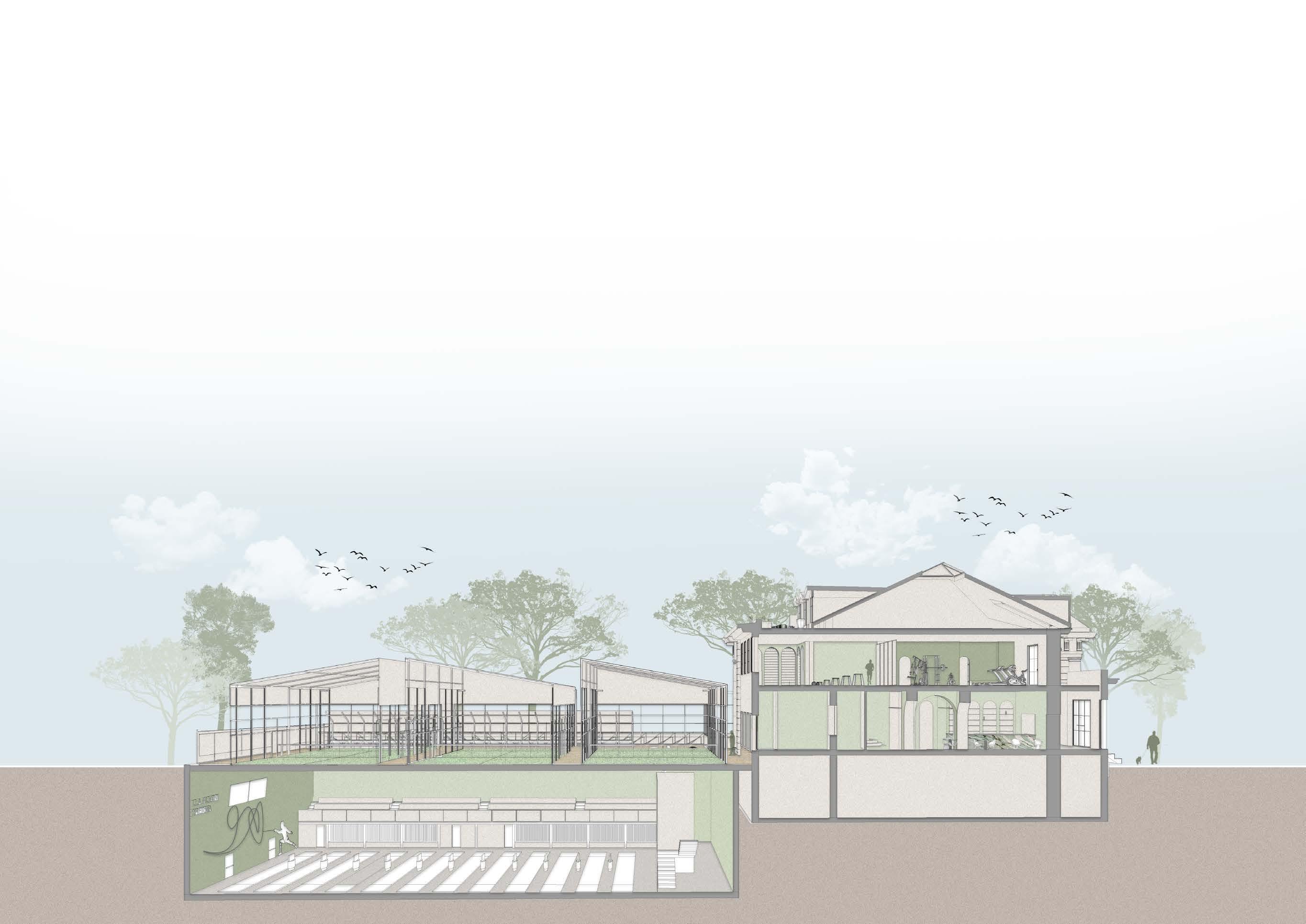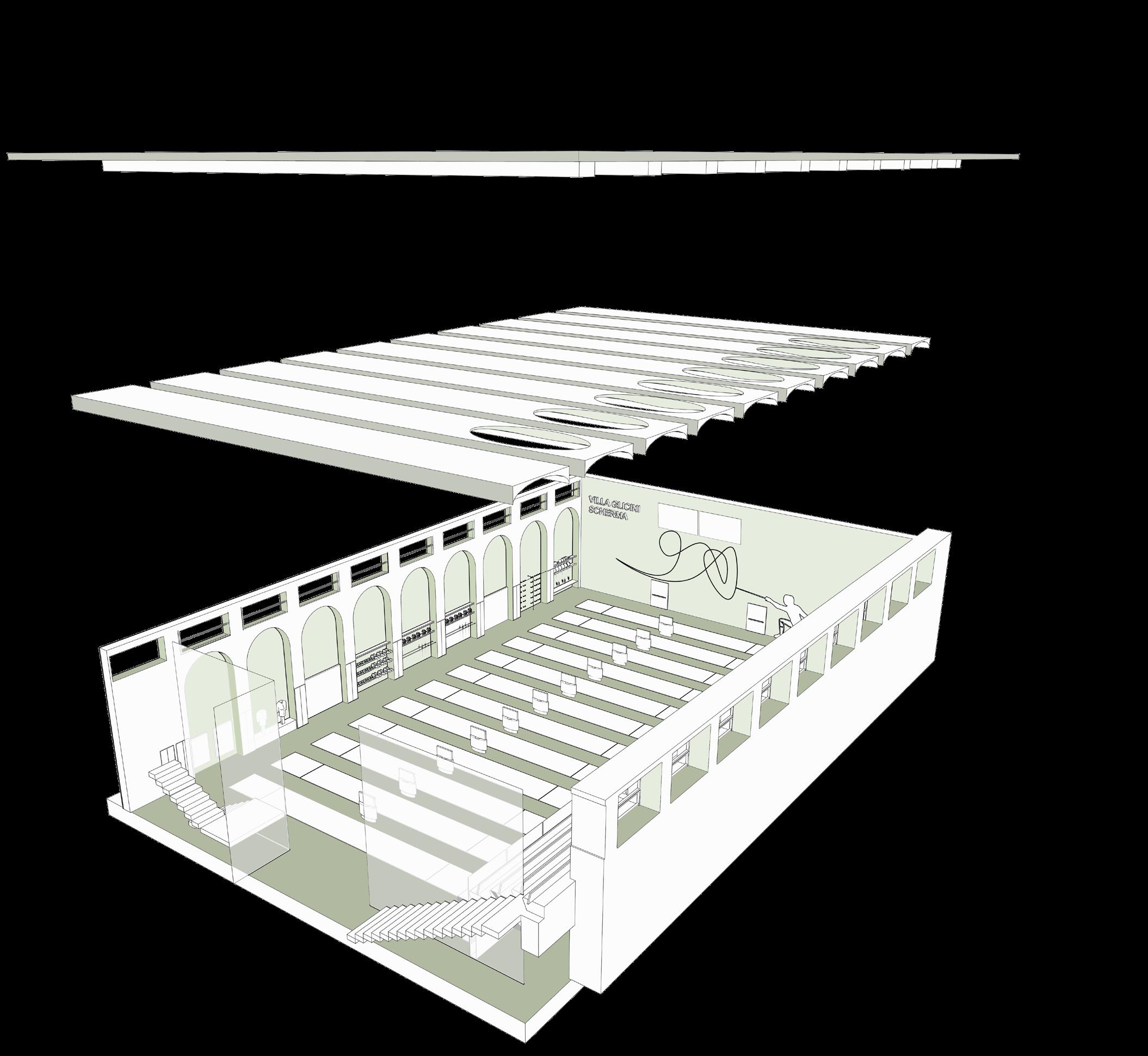 The project is proposed as an alternative for the renovation of the “Villa Glicini” sports complex located near the city center of Turin. This renovation surges from the municipality’s need, through a public architecture competition, to reactivate the entire area that was in disuse and deterioration for some years. The project contemplates the creation of new padel fields as well as the creation of a new fencing gym for the local community. In addition to that, is proposed the total renovation of the complex’s main building, including a new restaurant and exhibition room, as well as the entire outdoor areas.