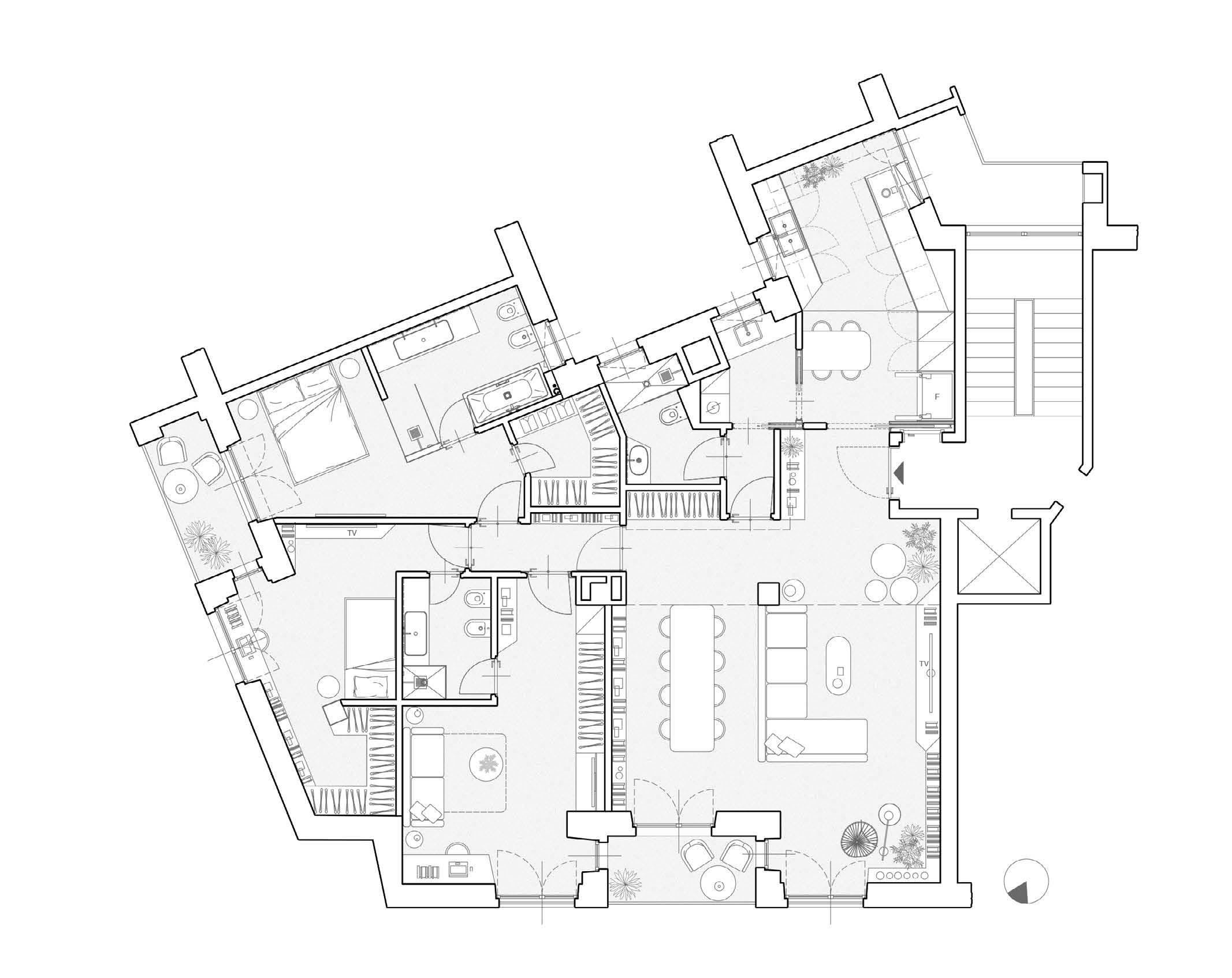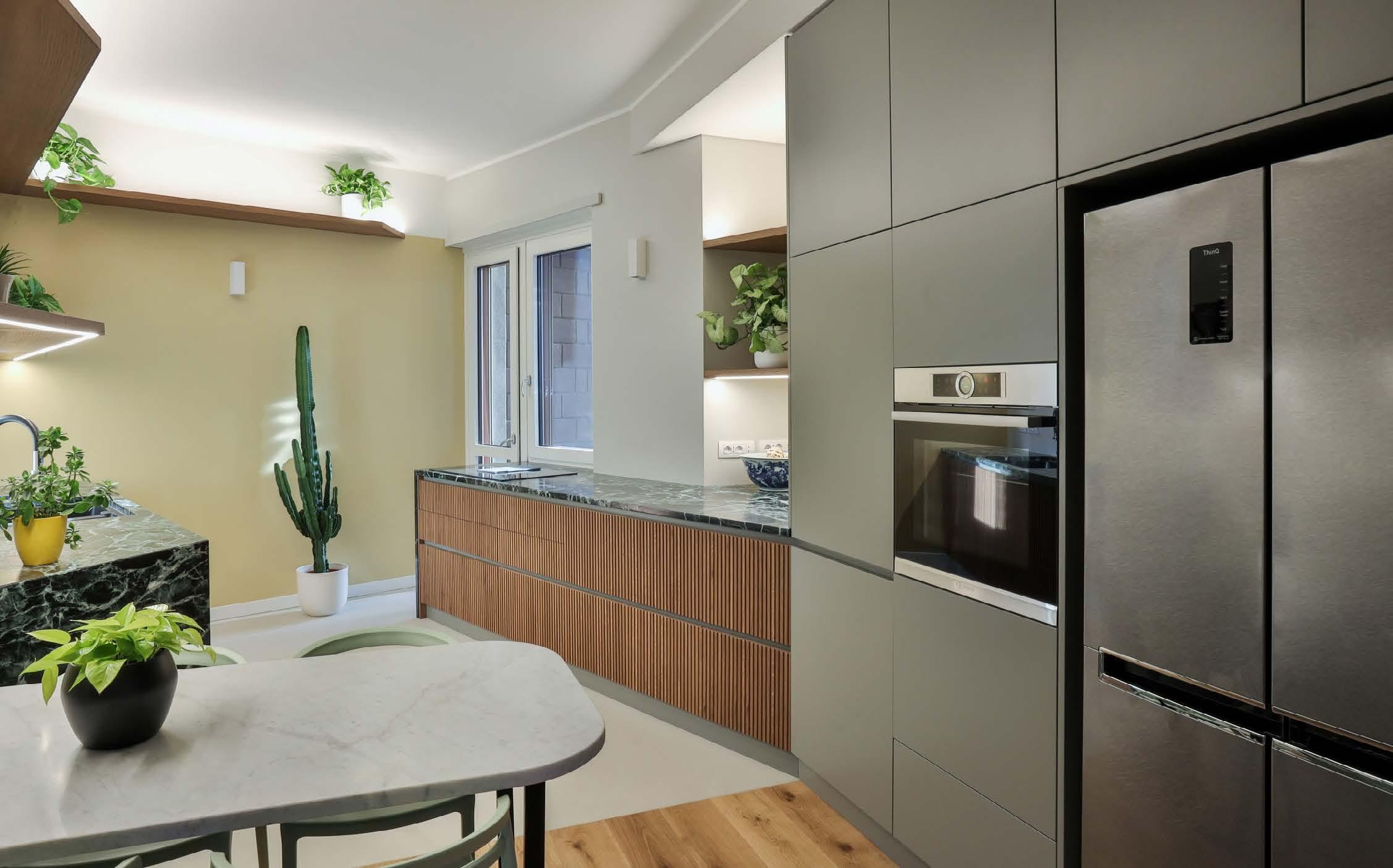 The apartment’s renovation project aimed to create a unique ambient through experimentation with different shapes, materials and colors that, despite being very different from each other, together generate a balance and a particular contrast that make this a cozy space.