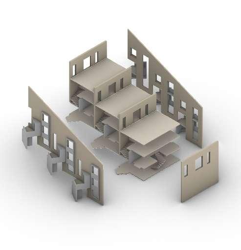 The second module corresponds to a medium slope. In this case, the bi-familiar typology is explored in section.