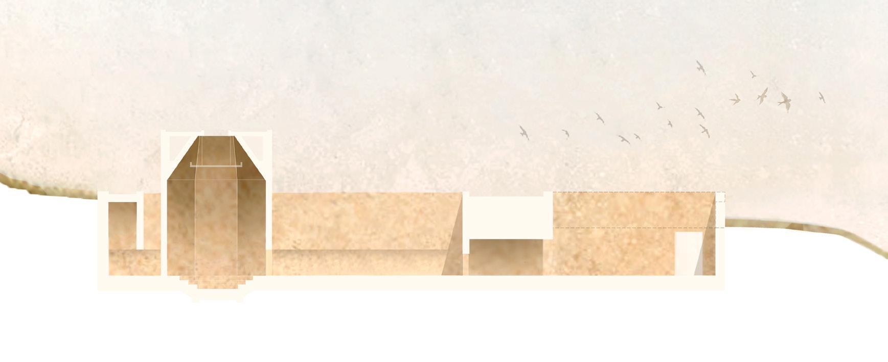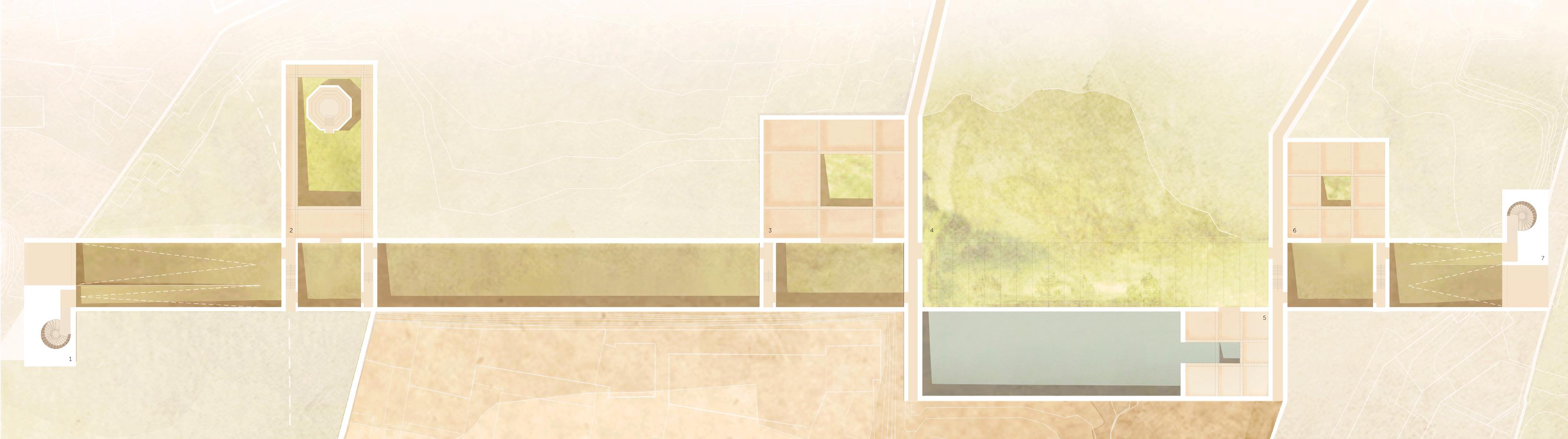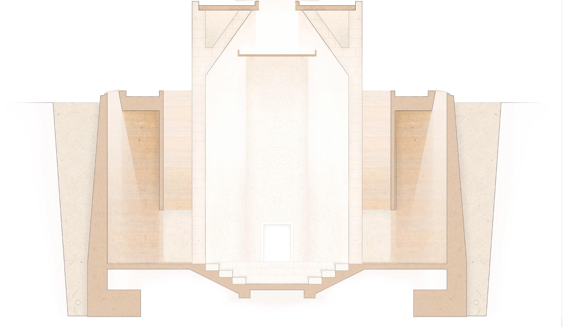 The technical solutions aim ro respond to the objectives in terms of spatial character and atmosphere. The project’s emblem is the duality between heaviness and lightness: the excavation asks for the use of heavy concrete retaining walls that enclose the built program.