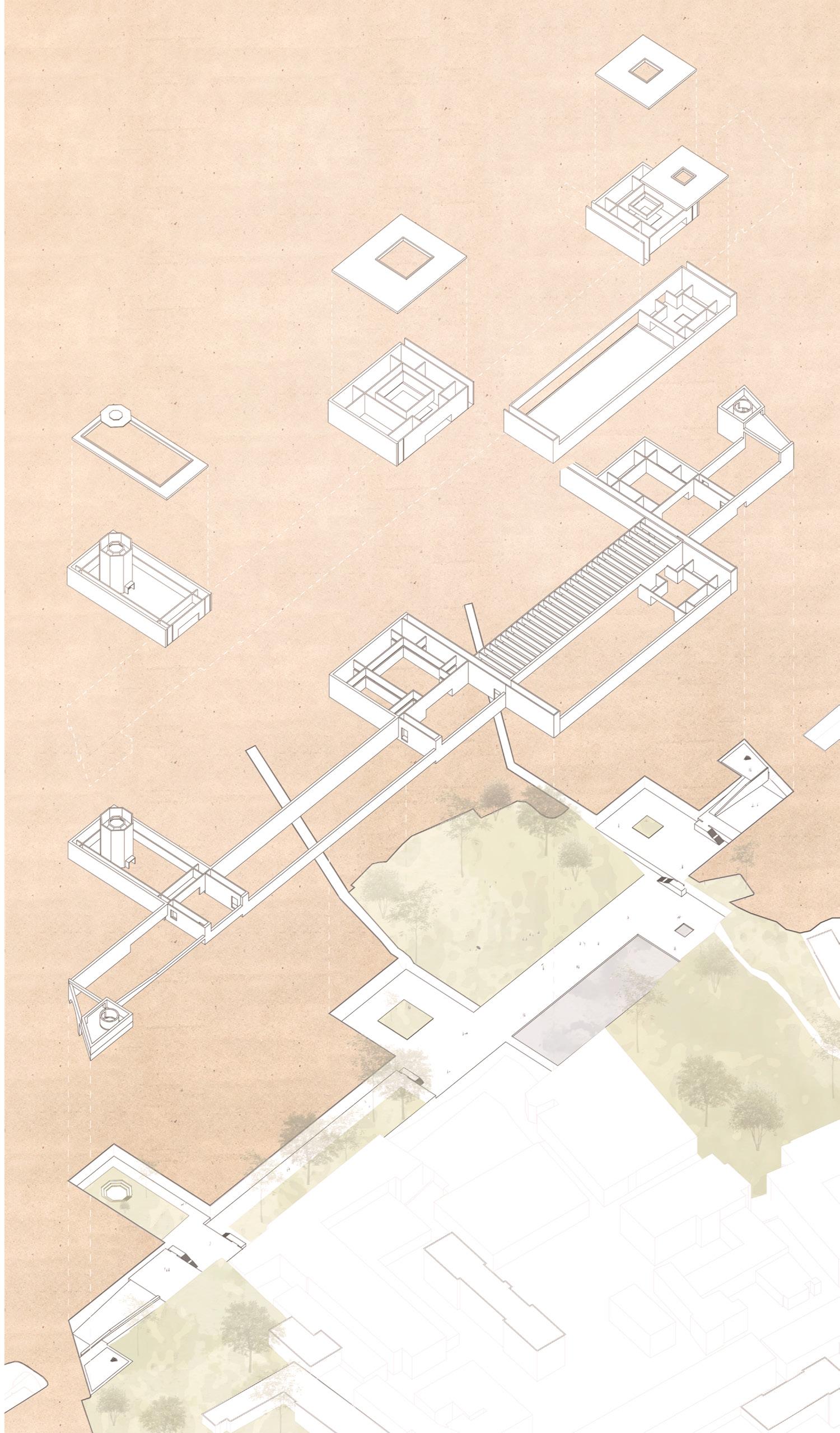 The studio work during my stay in Lisbon focused on rehabilitating the railway of an isolated area of the city with an architectural and urbanistic intervention. Our proposal intends to weave the unused railway with its surroundings by creating a promenade with a series of enclosed patios that articulate the community services and enrich the different scenarios along the path.