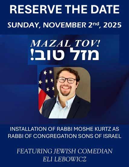 Be seated in a comfortable chair, preferably armless Open to the public in person and live stream. *$10 dropin fee payable to Congregation Brith Sholom. For more information email mbserow@gmail.com.