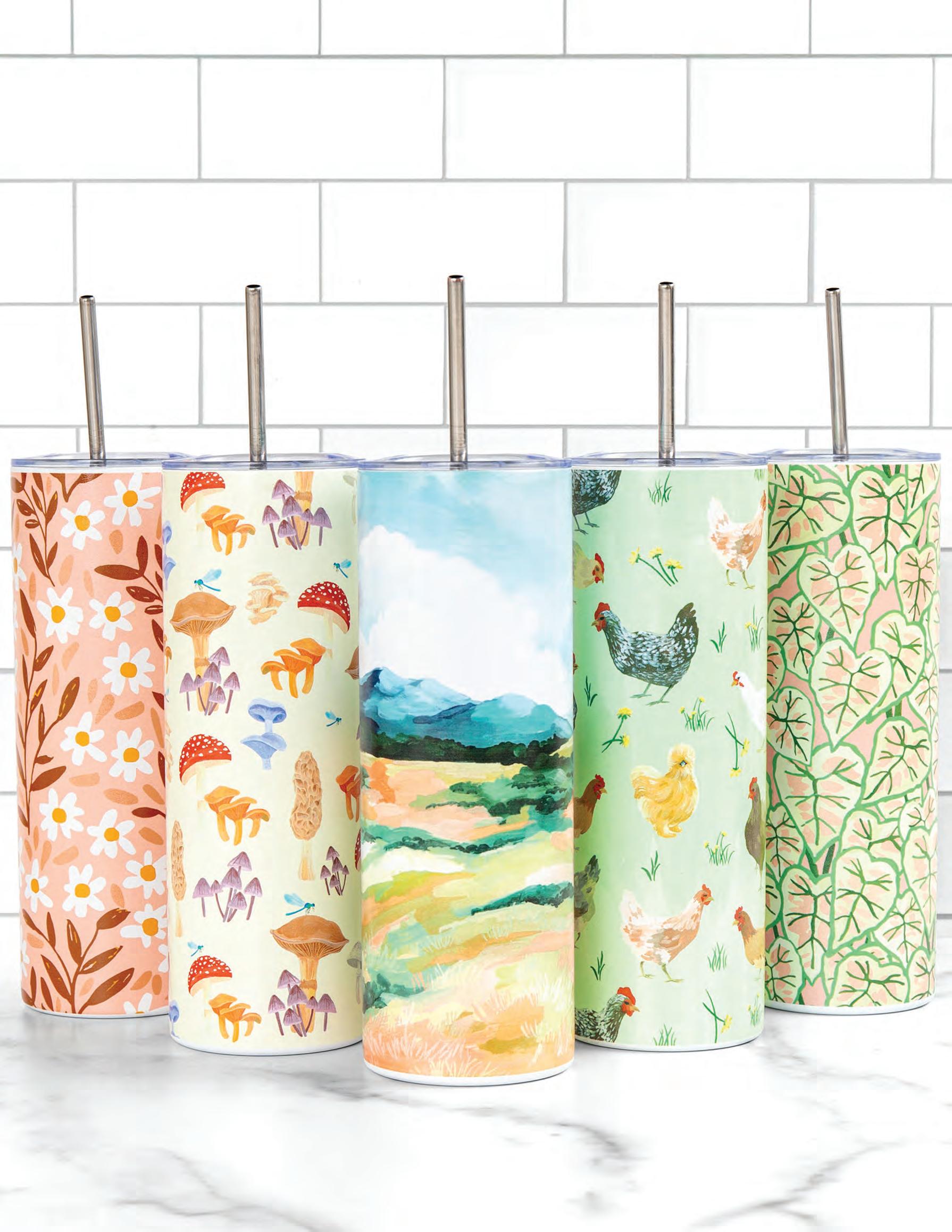 Featuring hand-painted designs on a matte finish, our double-walled stainless steel tumblers keep drinks hot or cold for hours, while the spill-resistant lids and reusable straws make them perfect for sipping on the go.
