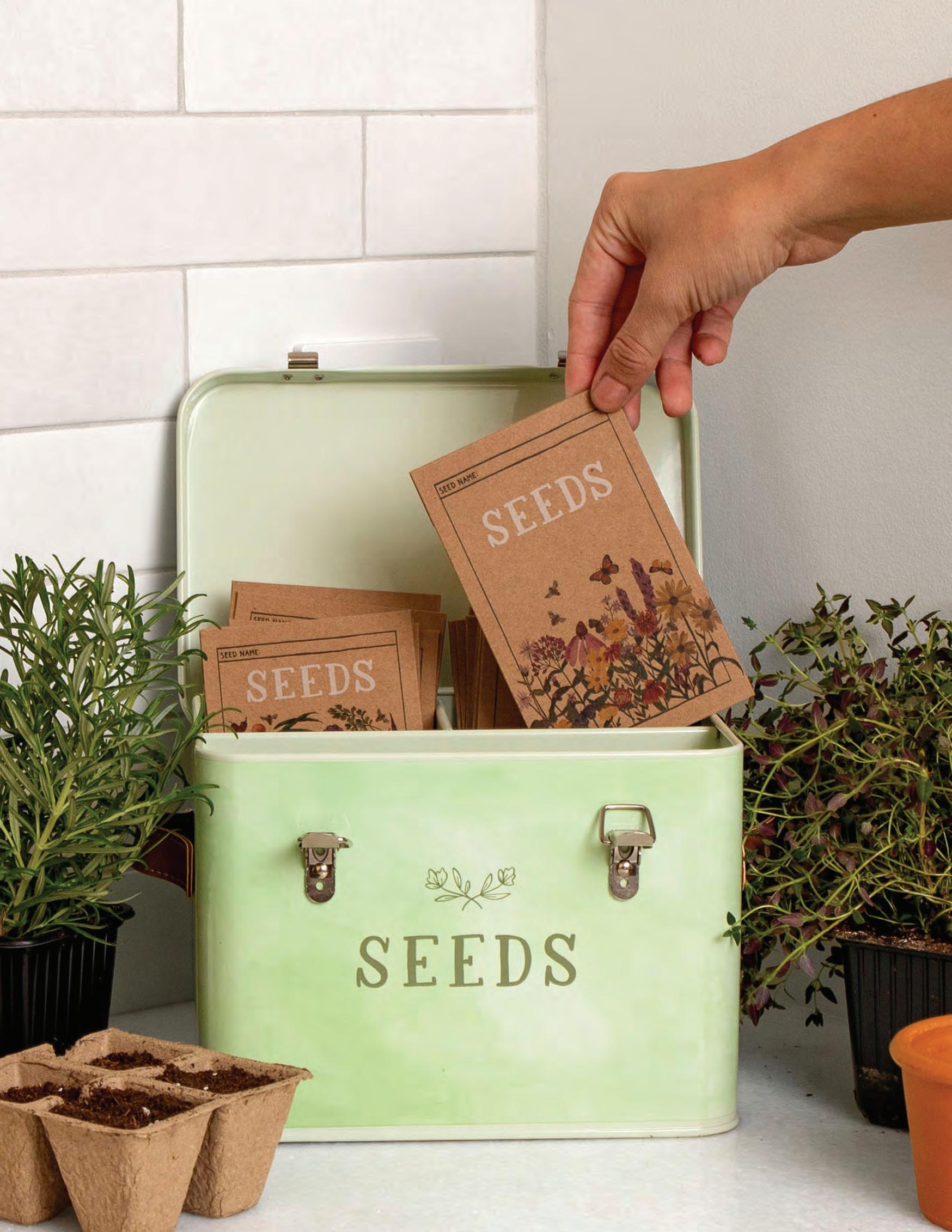 Crafted for organization and charm, our seed storage boxes are designed to keep your seeds safe and easily accessible. Ideal for gardeners and gardening enthusiasts, this tin storage box makes the perfect gift!