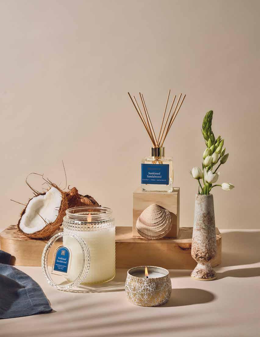 Creamy coconut softens the richness of sandalwood, while amber adds a warm, sunlit glow. Sunkissed Sandalwood lingers with an easy warmth that feels both grounding and bright.