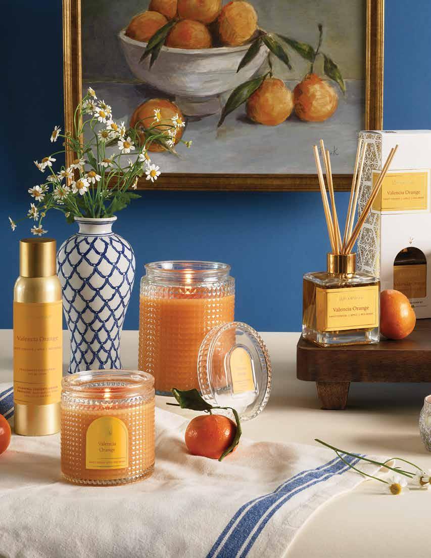 Cheerful and sun-kissed, Valencia Orange fills the air with juicy brightness. Notes of ripe orange, tangy berries, and a hint of citrus peel combine to create a fragrance that is lively, sweet, and fun.