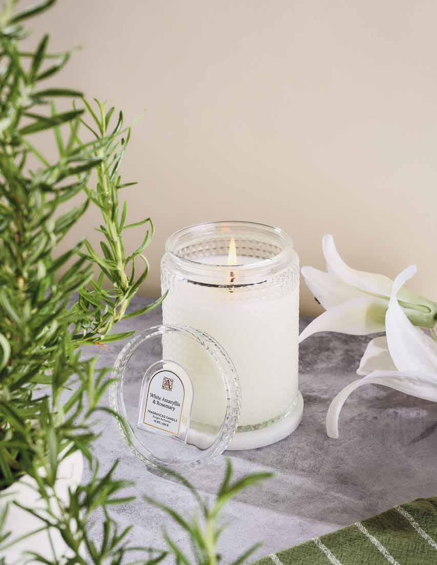 White Amaryllis & Rosemary pairs fragrant herbs with delicate florals and a hint of ginger. Clean yet graceful, this fragrance strikes a balance between fresh vitality and quiet sophistication.