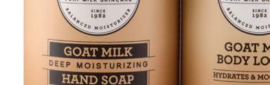 Goat milk is a key ingredient for delivering intense moisture to nourish the skin. Because goat milk has a pH like human skin, our products offer one of the best ways to cleanse and moisturize, without leaving a greasy residue.