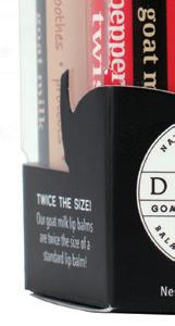 Includes a TOTAL of 72 pcs Display holds 36 pcs .75" (H) 7.25" (W) x 7.75" (D) LIP BALM DISPLAY SHELF TALKERS WINDOW DECAL TABLE TENTS Made in the USA Table Tent C33272 Made in Bucks County Table Tent C33653 DIONIS® Logo Inside Window Decal C33273 5" (W) x 7" (H) 5" (W) x 7" (H) 12" Dia. Why Goat Milk? C33271 DIONIS Brand C33256 Each Shelf Talker includes a wooden stand Shelf Talker: 3.5" (W) x 4" (H) Stand: .75" (H) x 3" (W) x 1.5" (D) 86
