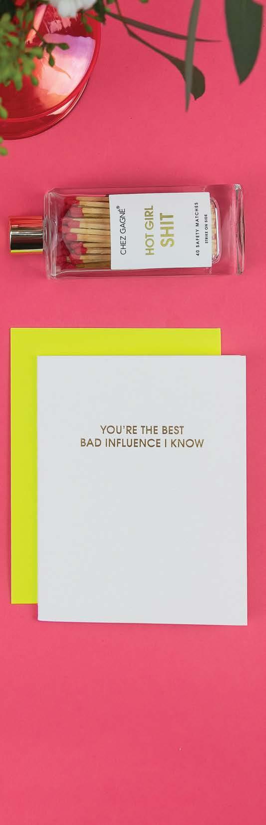 Our cards are printed on tree free paper. All paper and envelopes are FSC certified. Card cellos are 100% biodegradable. All greeting card designs are printed on vintage printing presses. Due to the handmade nature of letterpress printing, slight variations in ink coverage and registration are possible and are part of the beauty of this printing process.