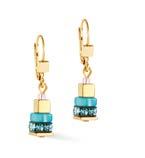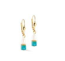 Perle d‘eau douce, turquoise, verre taillé, acier inoxydable d'or