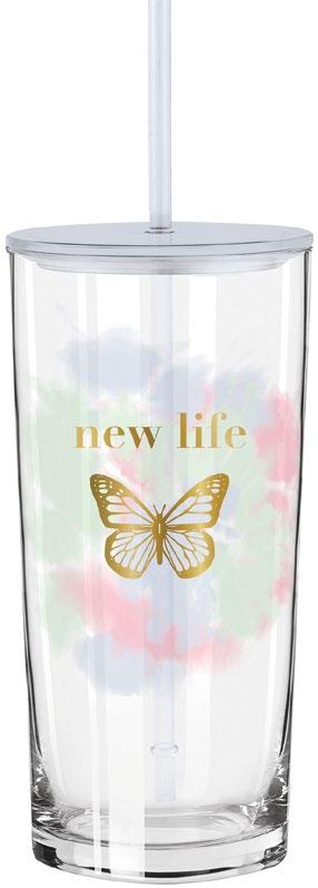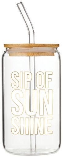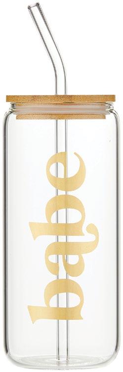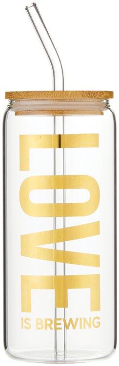 Glass | Bamboo | Gold Foil Details 20 oz | 9" H | Glass Straw Included Hand Wash Only | min 6 | Was $11.00 Clearance $9.59