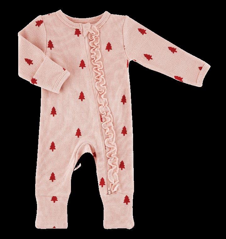 N6564 Trees with Ruffles Cozy Waffle Knit Romper