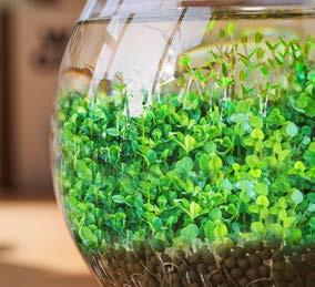 INFO: 1 GLASS FISH BOWL, 1 PACKET OF WATER GARDEN SEEDS, 1 BAG OF CERAMSITE, 3 DECORATIVE PEBBLES AND INSTRUCTIONS