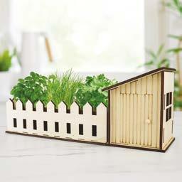 INFO: 1x PACKET OF BASIL SEEDS, 1x PACKET OF THYME SEEDS, 1x PACKET OF ROSEMARY SEEDS, 1x PACKET OF PARSLEY SEEDS, 4x COIR DISCS, 1x SELF WATERING CERAMIC HOUSE, 1x CERAMIC GARDEN PLOT, 1x DRAINAGE TRAY