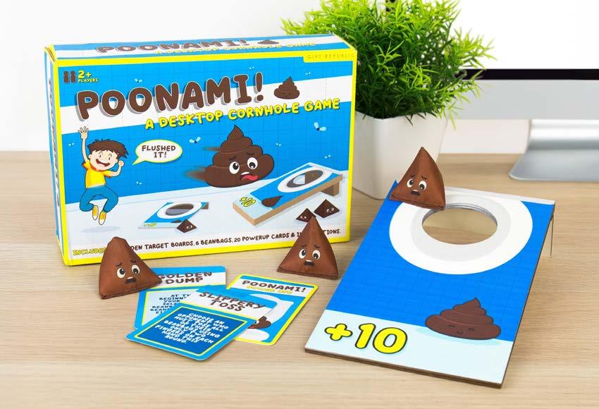 Join the potty party and see who can make the biggest splash with Poonami! This hilariously poop-tastic desktop game will have you and your friends tossing poop bean bags into the targets to score the highest points and crown yourself as king of the toilet throne.