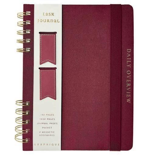 SPIRAL FABRIC-BOUND TASK JOURNAL WITH MAGNETIC BOOKMARKS