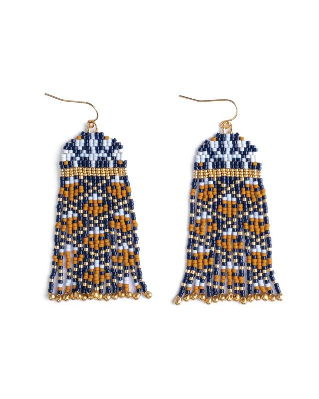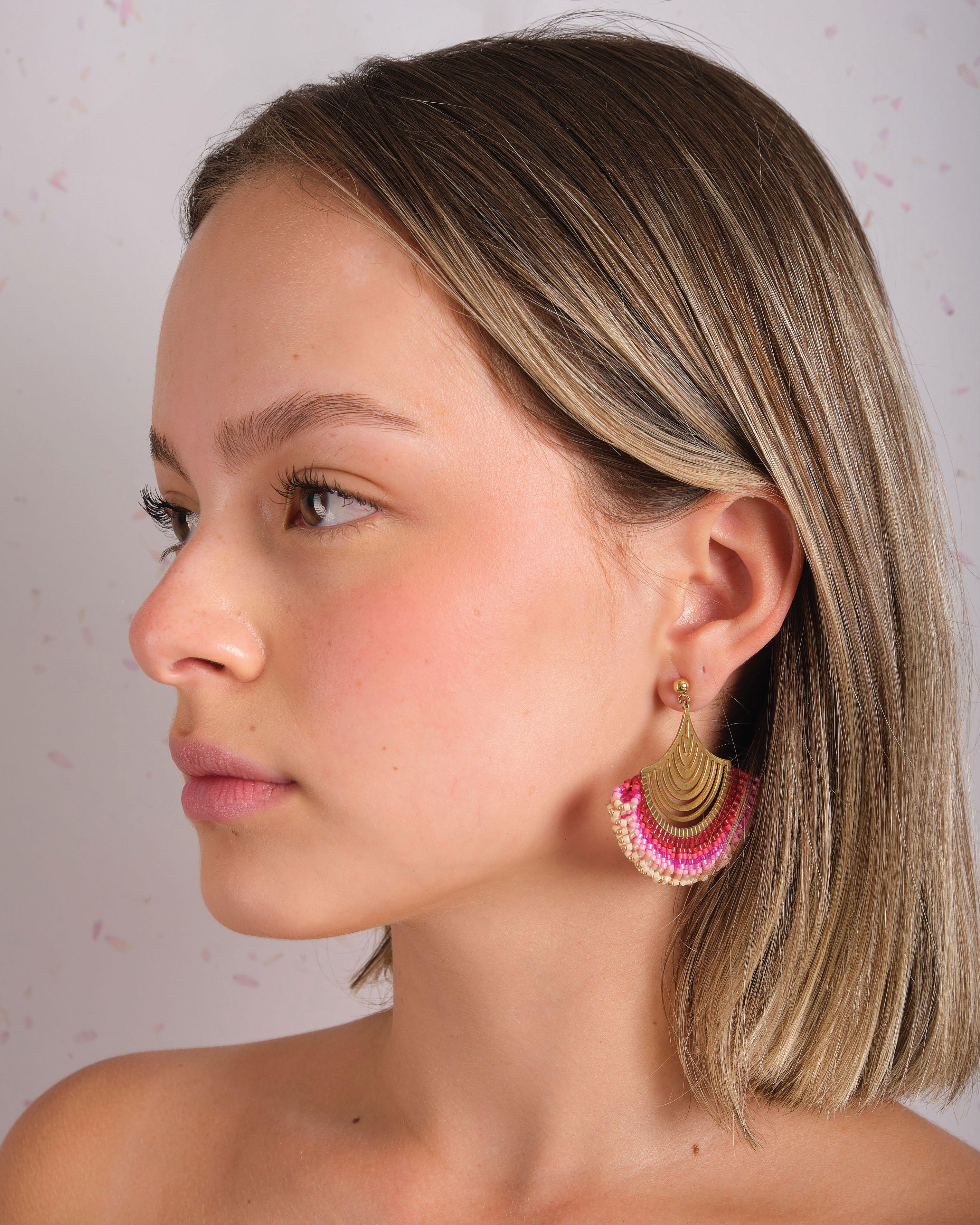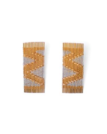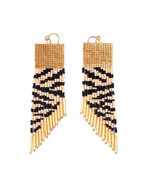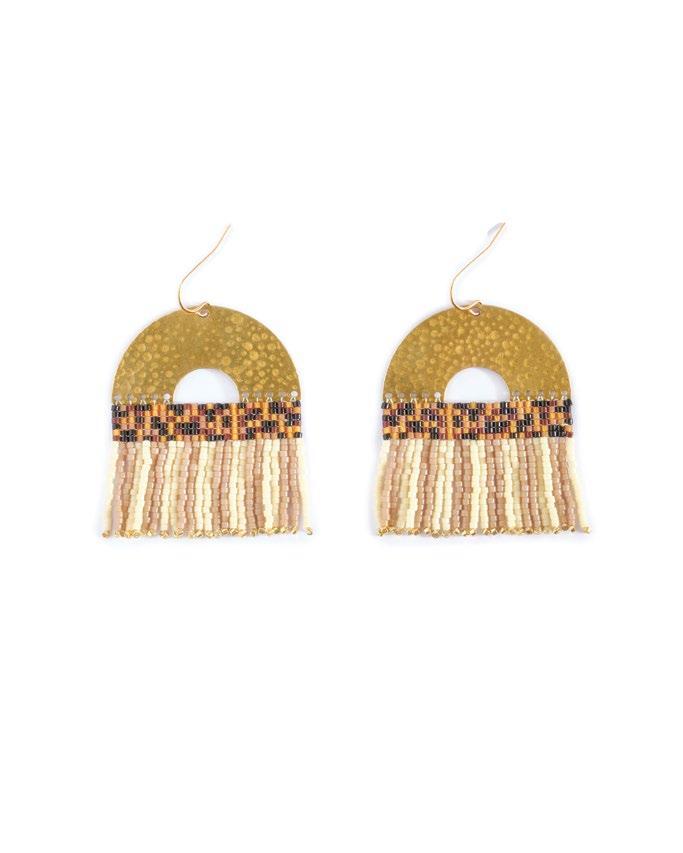 Designed by brand owner, Emily Wancier, each piece is created with meticulous attention to detail using premium Japanese Miyuki glass beads which are handwoven and often combined with brass. Each piece draws inspiration from global textile traditions, architectural motifs and art forms found around the world.