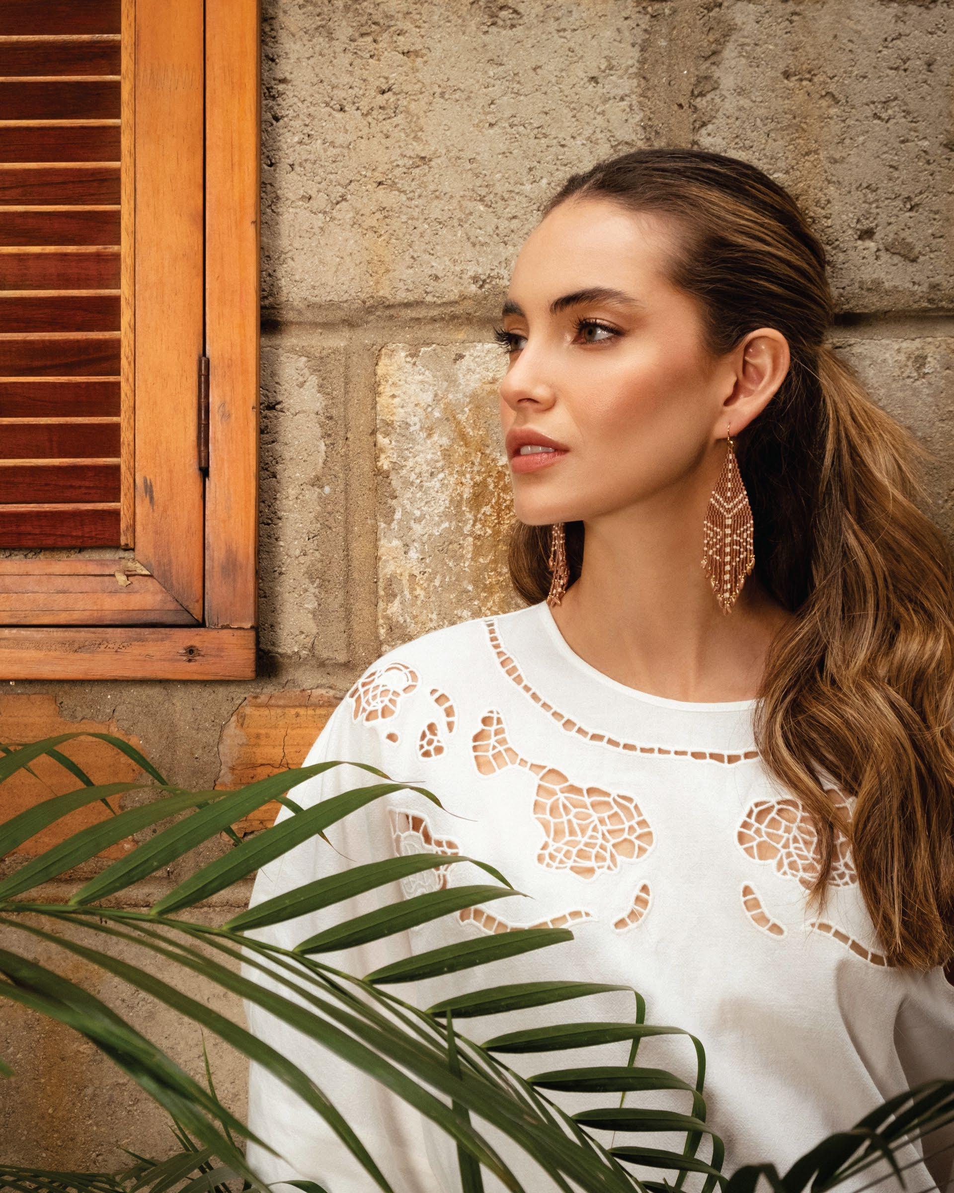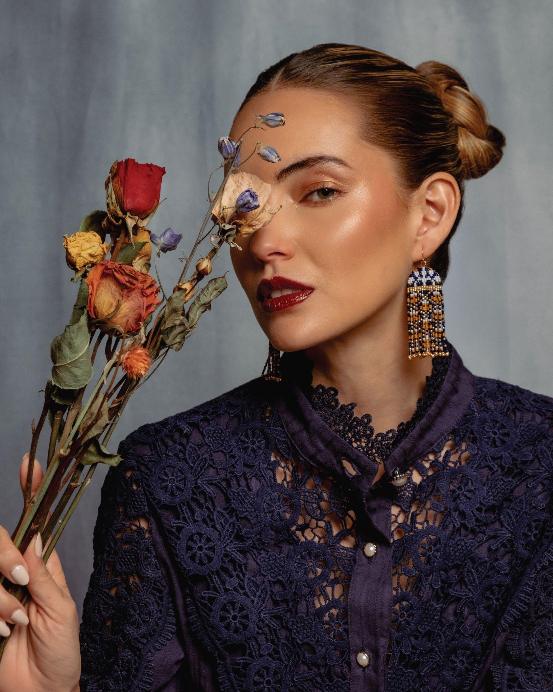 Designed in our Medellin, Colombia-based studio, every piece is handcrafted by our female artisan team who is made up of primarily single mothers from vulnerable communities. We are committed to o ering bead weaving training as well as fairly compensated stable work opportunities to our artisans.