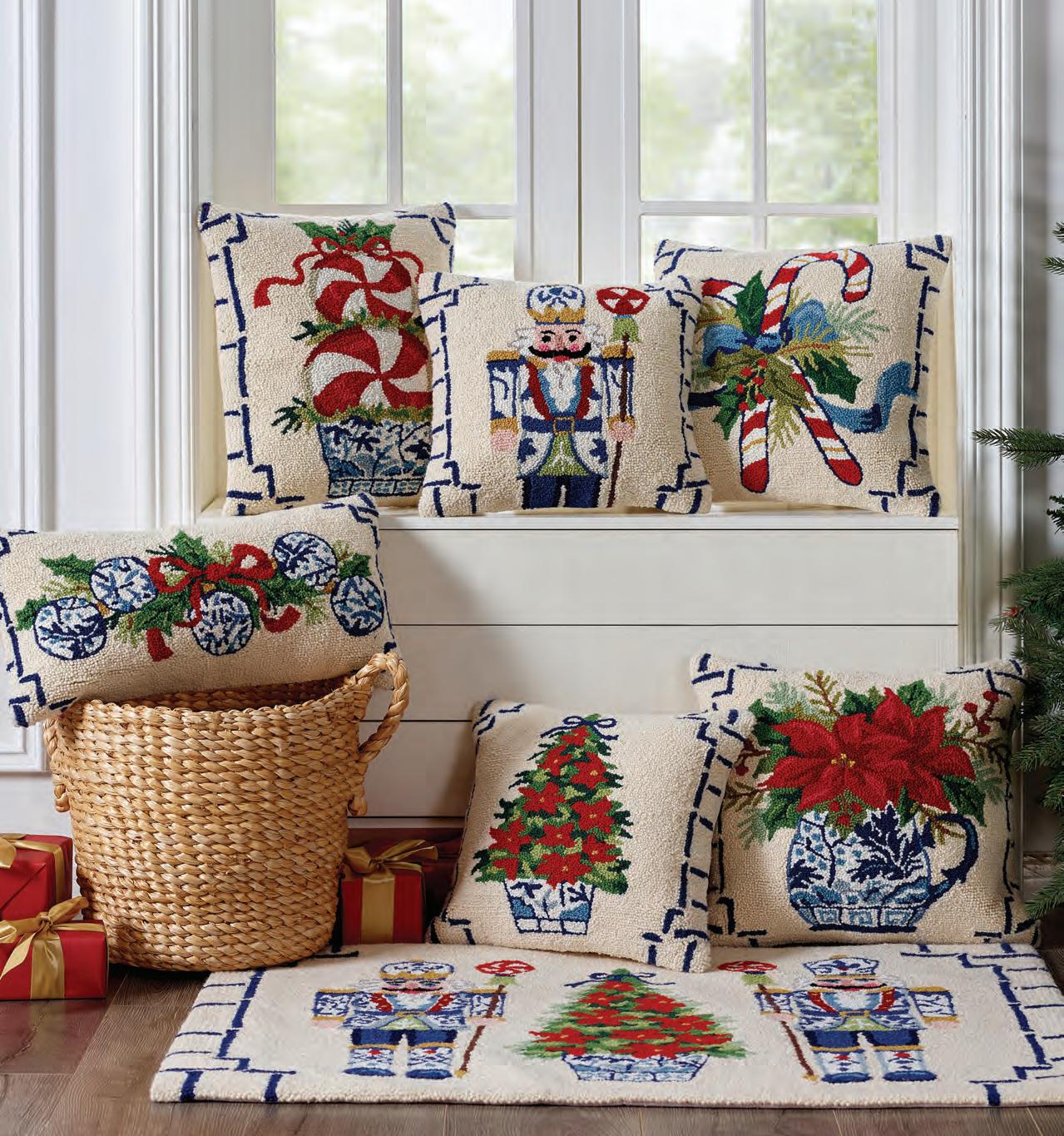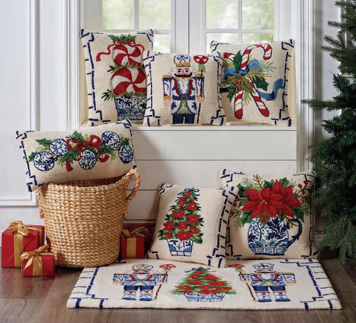 As all hook and needlepoint items are handcrafted there may be slight variations in our products. No two pieces are exactly alike, which adds to the uniqueness of each piece. All hook pillows and needlepoint items have a wool face and velvet backing unless otherwise noted. Pillows come with zipper opening and polyester filler unless otherwise noted. All hook rugs are wool face. Many of our printed items are skillfully hand screen printed. Due to the nature of this technique slight variations in color, registration, and design are expected.