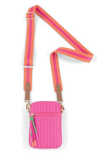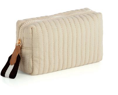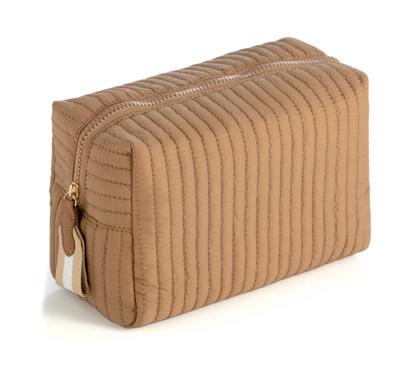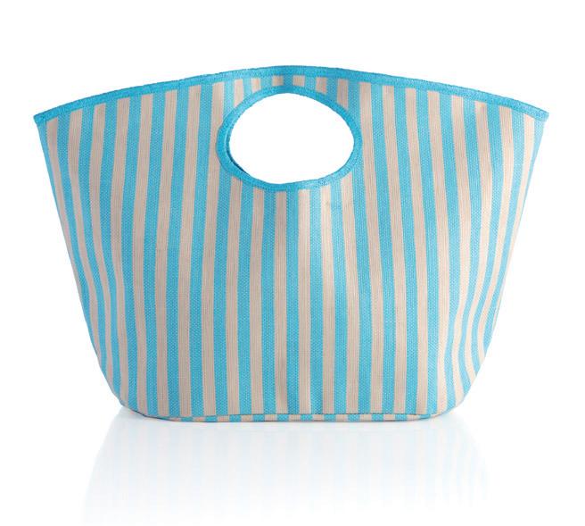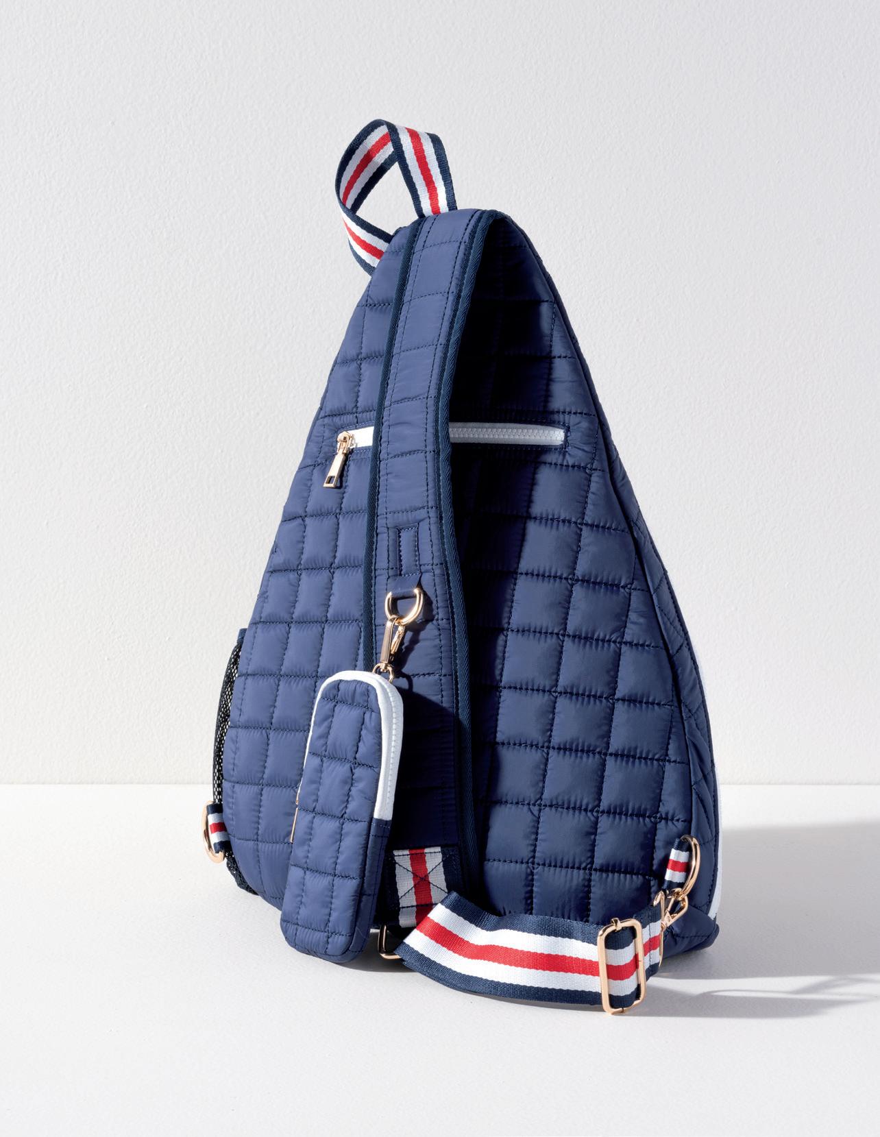 L 12.25” x W 5” x H 10”; strap 13” • polyester knit; single shoulder strap; drawstring closure; 1 inner zip pocket, 1 inner slip pocket • China v min 2 CAD $47 ea