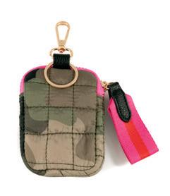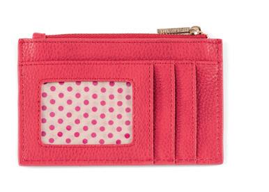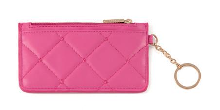 L 4.25” x W 0.25” x H 3” • patent pu; gold hardware; keychain; top zip closure; 4 credit card slots • China v min 4 CAD $17 ea