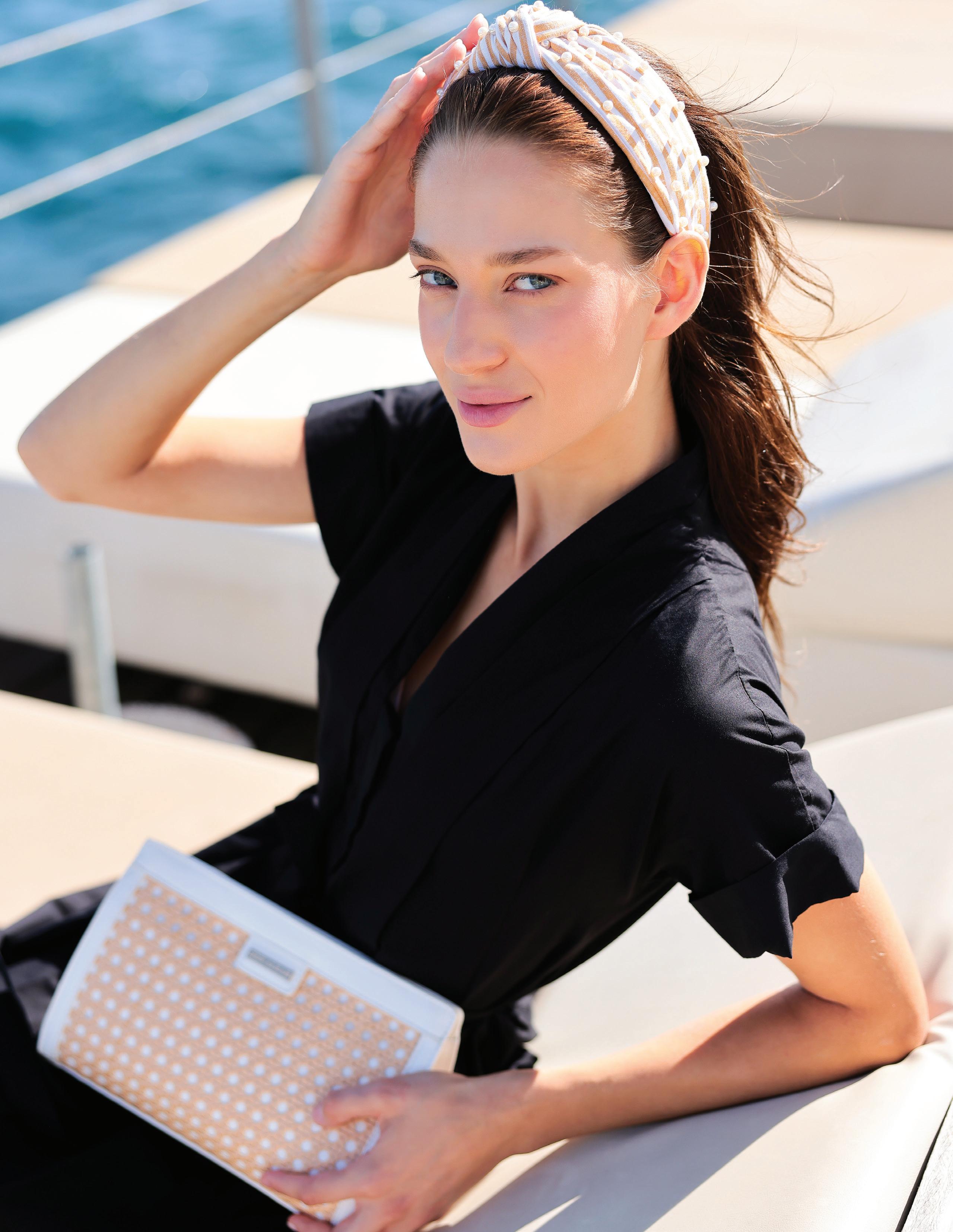 PEARL EMBELLISHED KNOTTED HEADBAND one size • polypropylene and faux pearls • China v min 4 CAD $12 ea