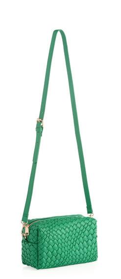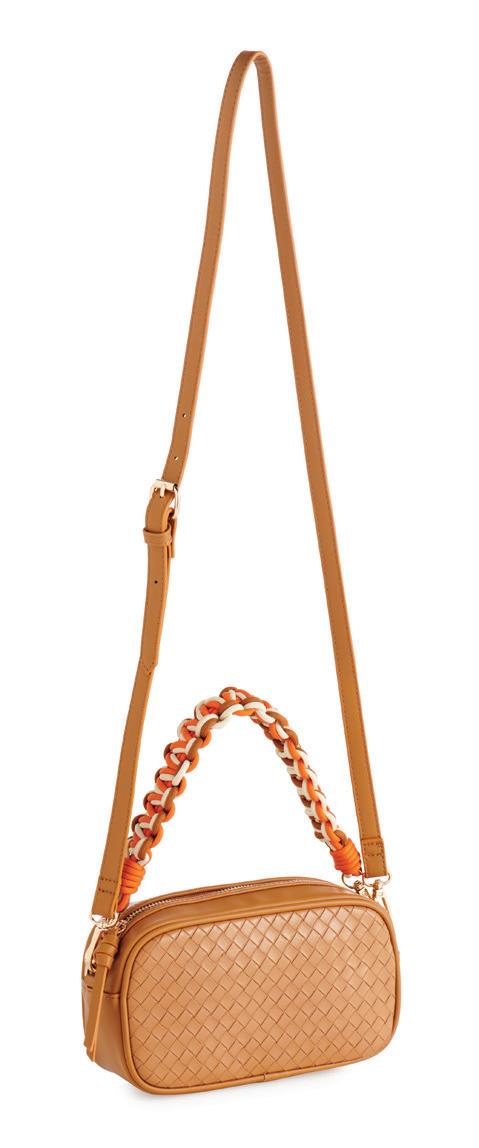L 10.5” x W 3” x H 6”; strap 11.5” • patent pu; single shoulder strap; top zip closure; 1 outer zip pocket; 1 inner zip pocket; 1 inner slip pocket • China v min 2 CAD $38 ea