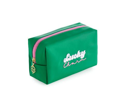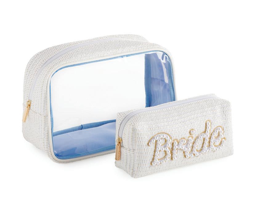 L 9.5” x W 2” x H 6.25” wristlet 7” • patent pu; gold hardware; detachable wristlet strap; top zip closure • China v min 2 CAD $32 ea