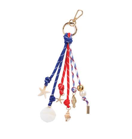 cord: 7”; charm: 4.25” • polyester and metal, gold hardware; key ring, clasp hook • China v MSRP $32 min 4 $14 ea