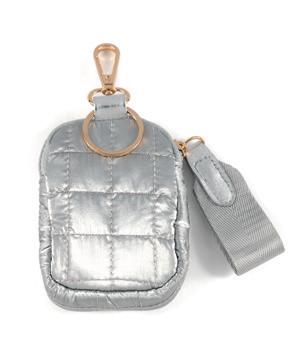 L 3” x W 1.5” x H 4” • polyester; gold hardware; key ring; clasp hook; top zip closure; 1 outer zip pocket • China v MSRP $26 min 4 $12 ea