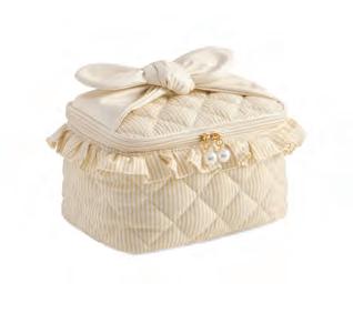 L 9” x W 4” x H 6” • pp, polyester, pvc and faux pearls; top zip closure • China v MSRP $42 min 4 $19 ea