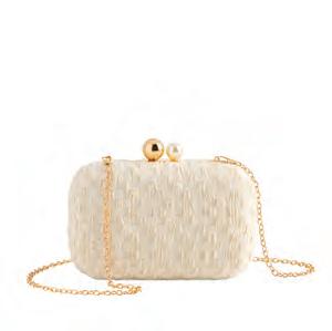 L 7” x W 3.5” x H 4” • polyester; faux pearl; top zip closure • China v MSRP $32 min 4 $14 ea