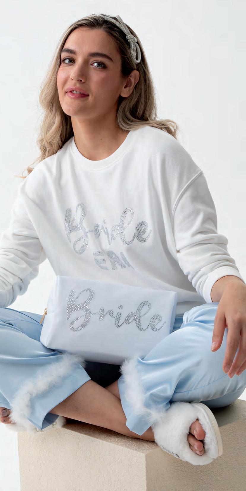 “BRIDE ERA” CLASSIC SWEATSHIRT cotton, polyester and rhinestones; machine wash, tumble dry low • China v MSRP $70 min 2 $32 ea IVORY