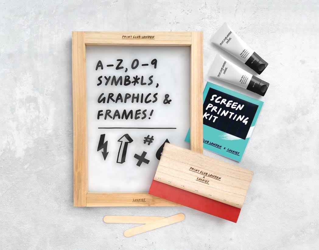 This kit and step-by-step guide has been developed by Luckies with Print Club London so that anyone can design their own t-shirts, tea towels, bags and banners, whether or not they’ve printed before. Our reusable templates and waterbased inks mean no nasty chemicals or single use screens. Just print, rinse and repeat. All you need is water, tape and some fresh ideas.