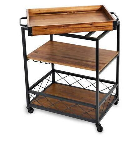 Holds 2 standard bottles • Crafted from wood Brass & faux leather accents • PKG: Tag
