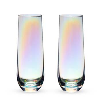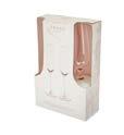 Includes 2 stemless Champagne flutes with electroplated gold rim & sparkle pattern • Engraved “Congratulations” inside lid Includes packing straw • PKG: Belly Band