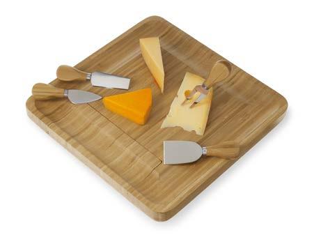 7 Space saving & convenient PRICE MATCHING • 90-DAY RETURNS • FAST SHIPPING • NO MINIMUMS CHEESEWARE 10162 | Case of 4 | $30.49 Per Set bAmboo Cheese BoARd & Knife Set Crafted from bamboo • Built-in storage Includes 4 cheese tools • DIM: 13" L x 13" W PKG: Box custom