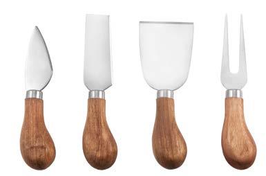 Set of 4 • Crafted from acacia wood & stainless steel Handles: 2.25" L • PKG: Hanging box
