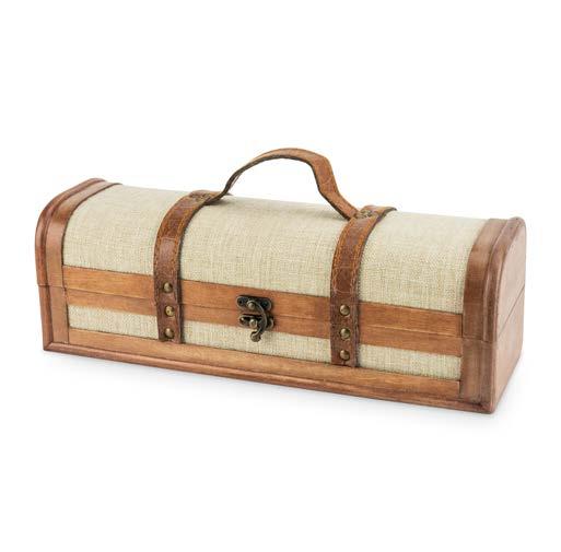 Holds 3 standard bottles • Crafted from pine wood • Metal latches DIM: 14.8" W x 12.8" H x 4.8" D • PKG: Belly band PeRsonAlize