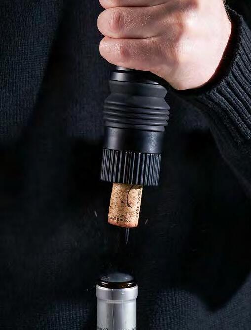 Powered by a compressed gas cartridge, this cork remover uncorks up to 80 bottles in seconds, whether sealed with real or synthetic corks. The concealed needle and accordion-style design absorb pressure for smooth, safe operation, while the textured twist base releases corks with ease.