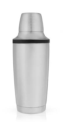 Double-walled stainless steel, with threaded leak-proof measuring lid and built-in strainer. Finished in sleek faceted pattern, it's the ultimate modern bar essential.
