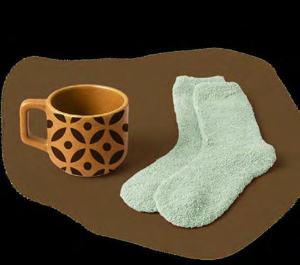 super-soft comfy socks and a scented candle in glass jar with cork stopper.