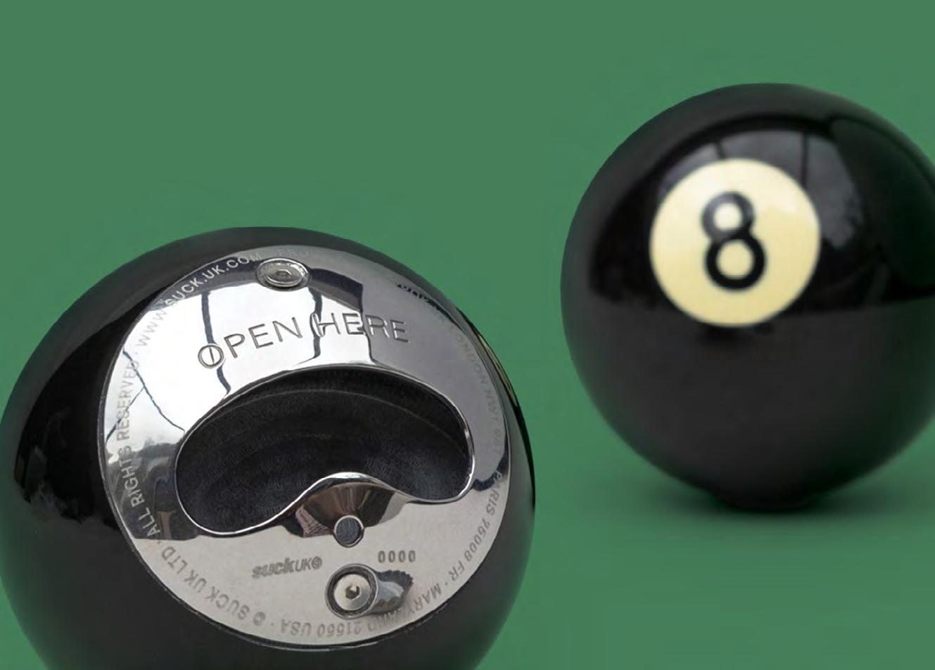 8-ball bottle stopper with airtight silicone seal.
