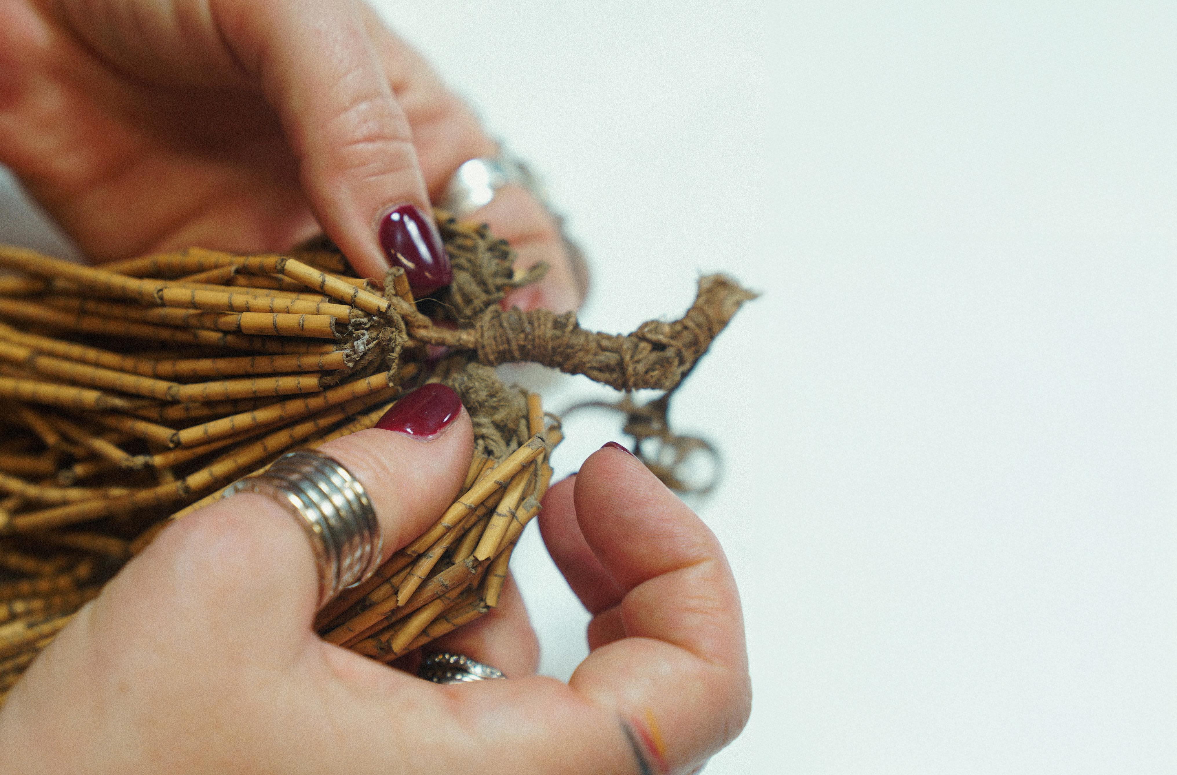 K We live in a contemporary, fast, consumable, commercial world, which is unfortunate, I think, for all of us as human beings. A lot of our materiality that we used in the adornment and making we had been practicing for 65,000 years, so we had actually got it right. For example, the resource-rich materials that we could use to make useful items that we needed to carry water from place to place, or to keep a baby warm once they were born, or to birth children without having septicaemia or other birthing issues. For me, that’s been my ‘a-ha’ moment. Aboriginal people, and certainly my family – my kids, myself and my husband – live by the rules of reciprocity, not necessarily just with other humans but with Country. You only take what you can use today. There’s no stockpiling. There’s no refrigerator with seventeen weeks’ worth of meals in it. You fish this morning, so that you can eat for lunch. You harvest the lomandra, or you harvest the possum skins that you need because your baby’s cold today. You do what is needed and required for the moment. I think that sort of living, a lot of farming, a lot of art has come from that way of being. I think that people who are makers understand that with a lot more ease than perhaps someone who works in an office environment. For me, one of the big callouts with this project with the British Museum has been realising that it’s key to understand what you need, how much of it you need, knowing exactly the number and knowing exactly when it’s in harvest. It’s understanding seasons, it’s understanding ecology, it’s understanding geography,