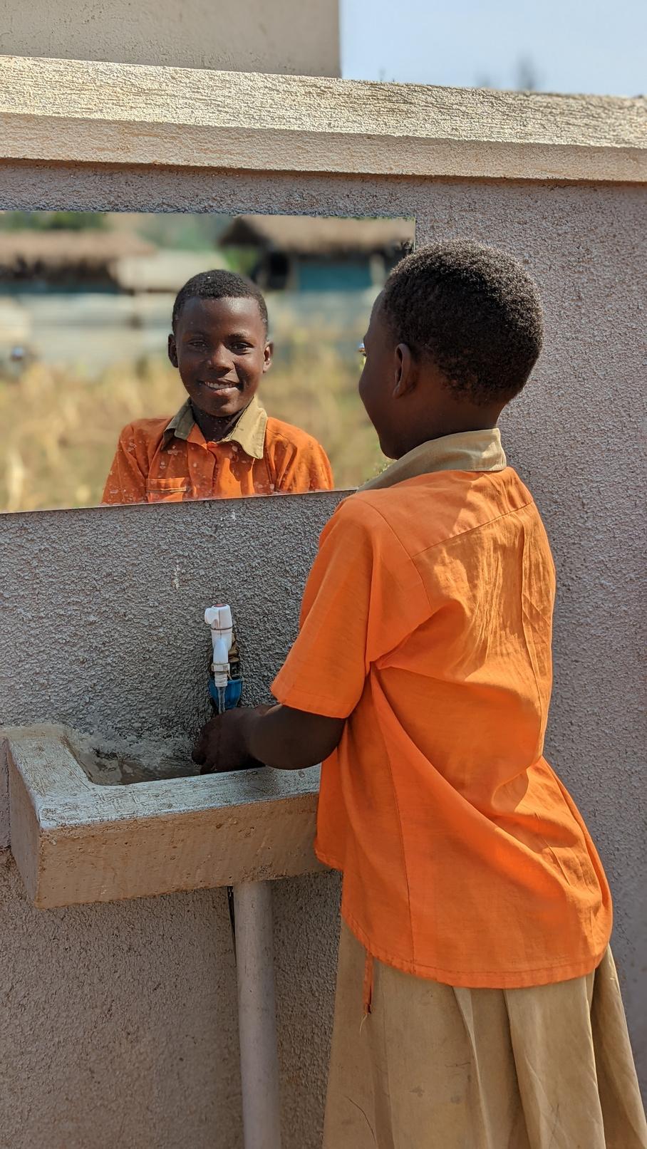 New innovations like mirrors, taps, and sinks constructed on school latrines are encouraging good hygiene practices. Looking into the mirror while washing, students not only see their own