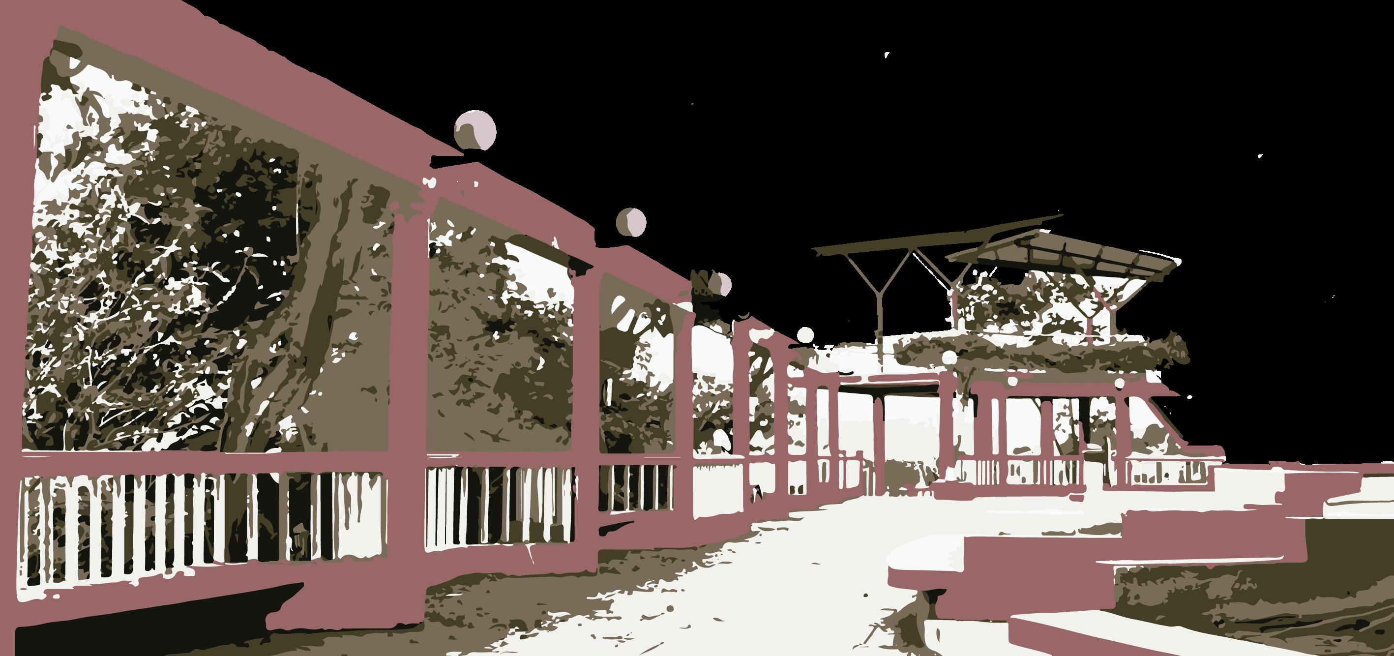 Patio central, espacio público interno que sirve como punto de encuentro. Está rodeado de una circulación abierta (delimitada por un cerramiento) y una circulación cerrada en “L” (delimitada por mamparas).
