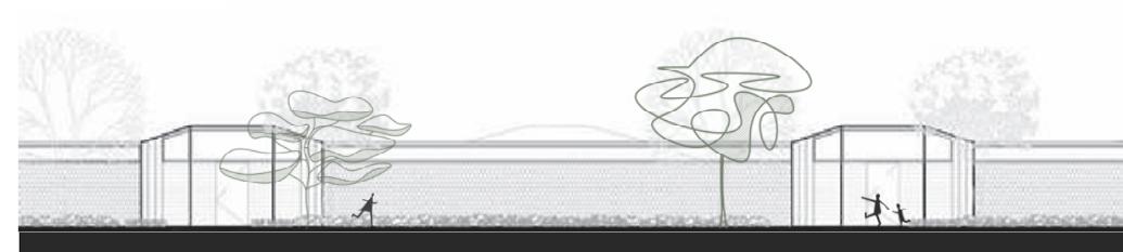 Es el módulo de vivienda destinado a 4 personas. Los espacios se encuentran conectados por un hall previo.