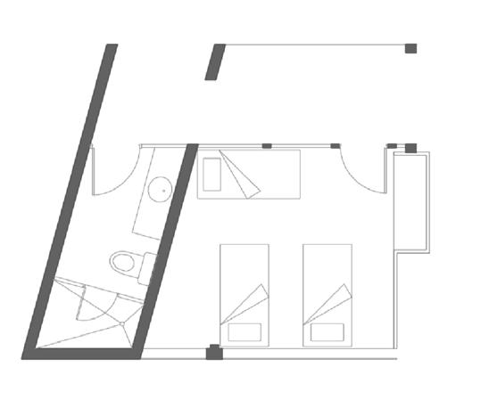 Es el módulo de vivienda destinado a 2 personas. Funciona como una habitación independiente, con espacio para la ubicación de una mesa doble.