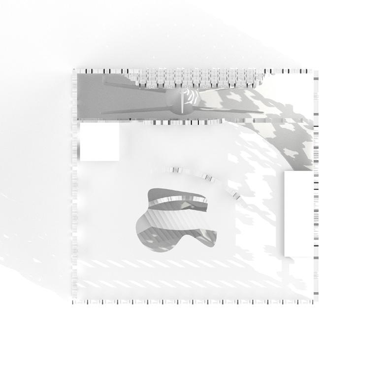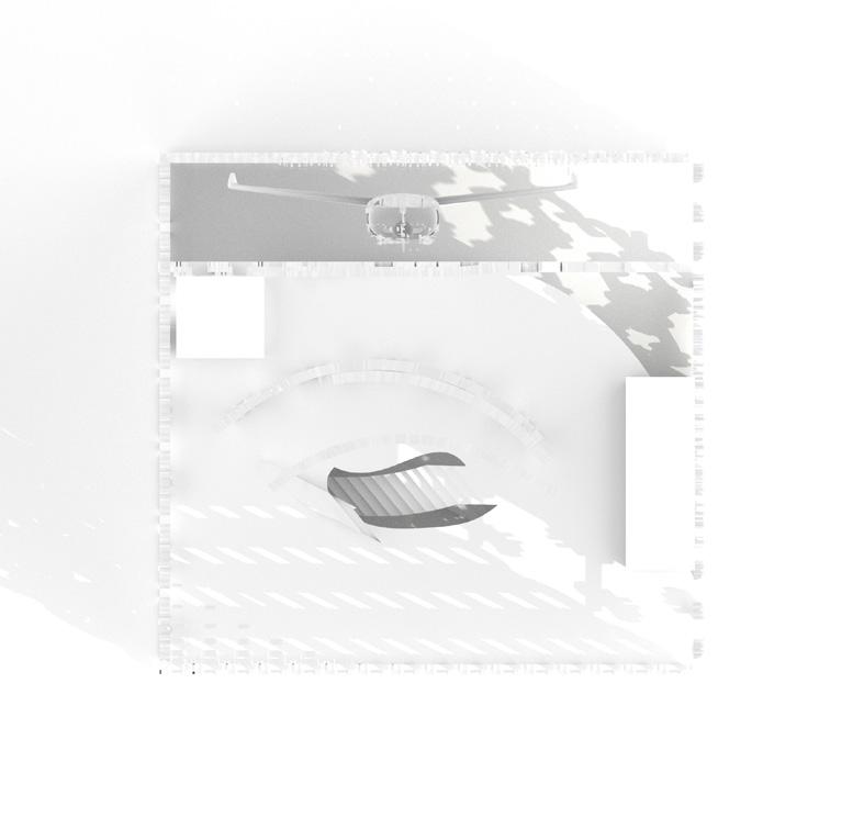 Studio Design was an investigation into programming for a club of our choice. This Aviation Club design is an all-purpose site featuring a café, flight simulators, viewing space, and classrooms. An airplane was incorporated into the building as an art piece and also creates a scale of space between people and plane.